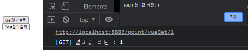 Get결과출력 버튼 클릭시 정상처리시의 Alert도 잘 떳다!